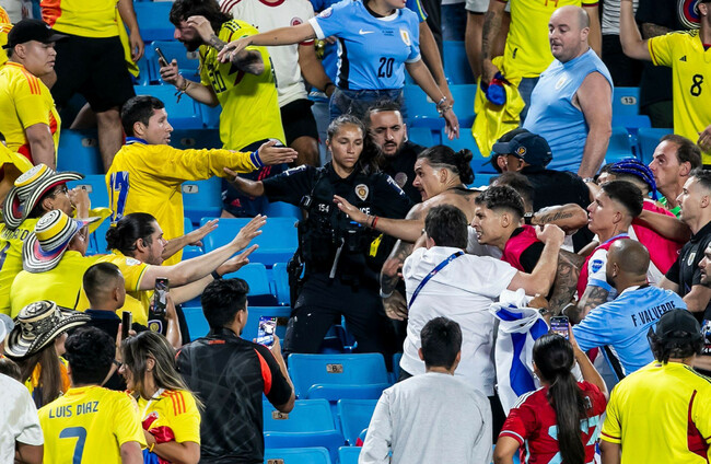 A skirmish behind the Uruguay bench saw a group of supporters clash with Colombia fans, who made up the vast majority of the crowd, with drinks thrown.