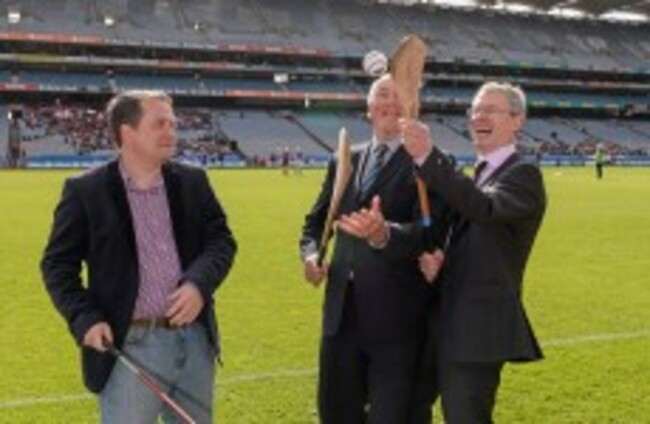 Clare manager Davy Fitzgerald, former Kilkenny star Eddie Keher and former Derry star Joe Brolly at the launch of the 14th Annual All-Ireland GAA Golf Challenge in aid of Opt For Life and Local Waterford Charities. Ray McManus/Sportsfile