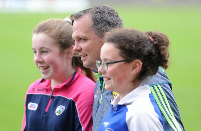 Davy Fitzgerald poses with young fans at O'Moore Park on Sunday. Tommy Grealy/INPHO