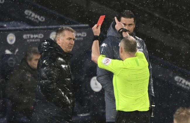 Dean Smith rages after decisions go against Aston Villa at Manchester City