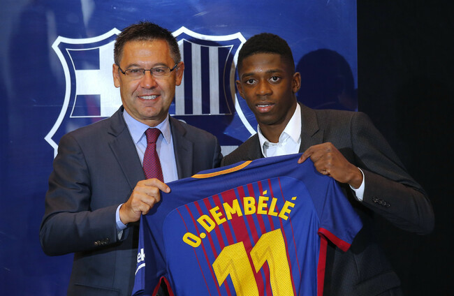 FRENCH WONDERKID OUSMANE Dembele’s presentation as Barcelona’s newest star was overshadowed by the tense atmosphere surrounding the Catalan club as fans jeered and called for president Josep Maria Bartomeu to resign.
