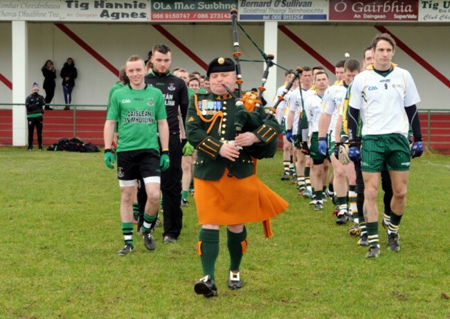The Defence Forces and Castlewellan (Down) parade before the senior final of the 2015 Phonewatch Comórtas Peile Páidi Ó Sé.