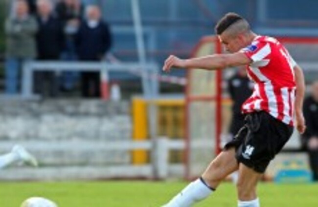Derry winger, Duffy then doubled City’s advantage on the half-hour mark after exchanging passes with Barry McNamee on the edge of the area, before clinically finishing into the corner of the net.