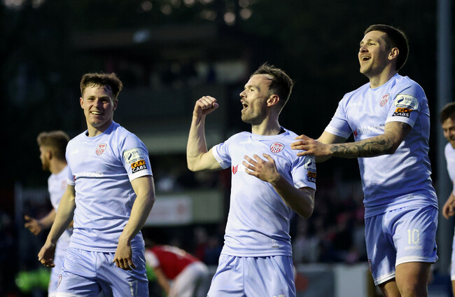 The chasm between the sides wasn’t just athletic, with Derry technically better, and the second goal arrived on the half-hour mark. Patching twice dummied shots in the penalty area – twice sending a Pat’s player skidding helplessly to the ground – before pushing the ball left for Smith, whose drive across the box was diverted into the net by McGonigle.
