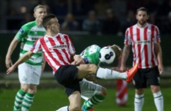 Shamrock Rover's Jason McGuinness and Derry's Rory Patterson Lorcan Doherty