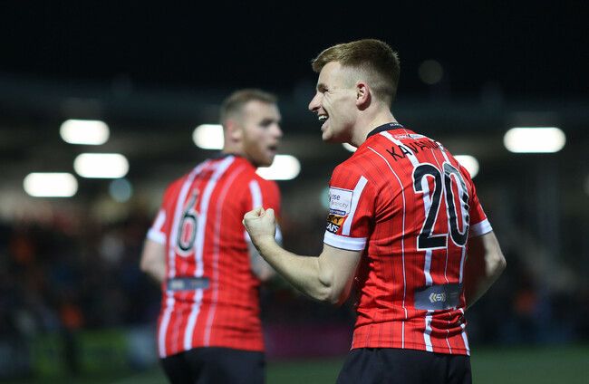 Derry City's Brandon Kavanagh celebrates scoring a goal. Lorcan Doherty/INPHO