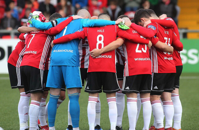 Derry hit back and almost capitalised from an Aaron McEneff corner but Splaine’s downward header was hooked off the line.