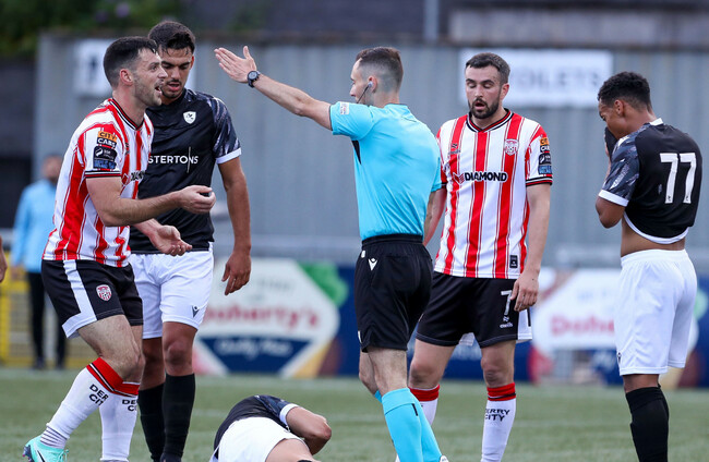 Derry City: Maher, Dummigan (Diallo 78), Connolly (S McEleney 90), Coll, Doherty (Whelan 105); O’Reilly (sent off 45), Patching, McMullan; Kelly (Todd 90), Pat Hoban, Michael Duffy (Mullen 79).