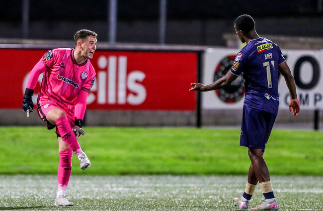 Former Candystripe Kelly should’ve levelled the game when Odubeko found him with an inch-perfect pass at the back post, but the Dubliner fired high over the bar.