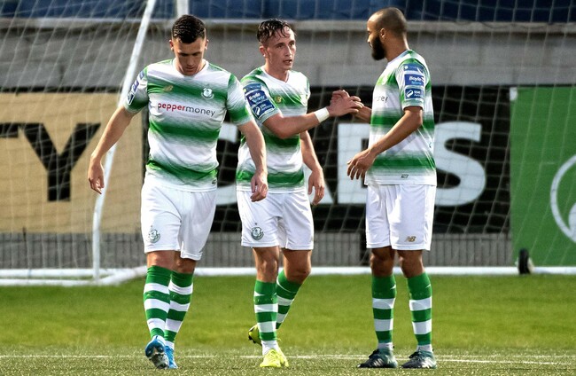 SHAMROCK ROVERS: A. Mannus: E. Boyle, R. Lopes, L. Grace, S. Kavanagh; J. Byrne, A. McEneff (D. Watts 79), G. Bolger (B. Kavanagh 87), G. Burke (G. O’Neill 77); R. Finn; A. Greene.