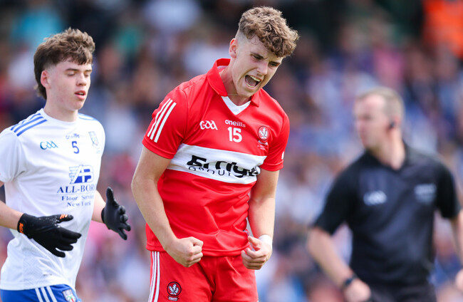 Conall Higgins, Ger Dillon, Éamon Young and Cahir Spiers were all on target for Derry during the opening quarter as they built up a four-point lead. Matthew Finn and Max McGinnity kept Monaghan in touch at 0-8 to 0-6 at half time, but Derry restarted by doubling their lead through Dillon and Higgins.