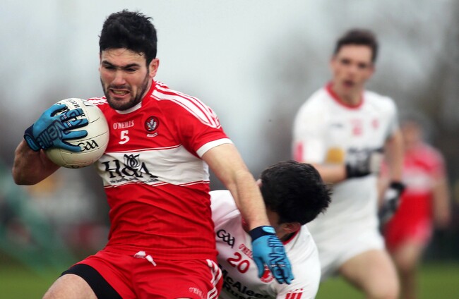 DERRY: B McKinless; N Keenan 0-1, B Rogers, K McKaigue; C McFaul 0-2, C McWilliams, D Heavron 1-1; C McAtamney, C McKaigue 0-1; R Bell 0-2, N O’Loughlin 0-2 (1f), M McEvoy; D Tallon 0-3, J Kielt 0-3 (2fs), B Heron. Subs: E McGuckin 0-1 for O’Loughlin (h-t), M Lynch 0-1 for Bell (45), S McGuigan for Kielt (48), N Forrester for McFaul (55), C Nevin for McAtamney (60), G O’Neill for Heron (64), C Nevin for McAtamney (68).