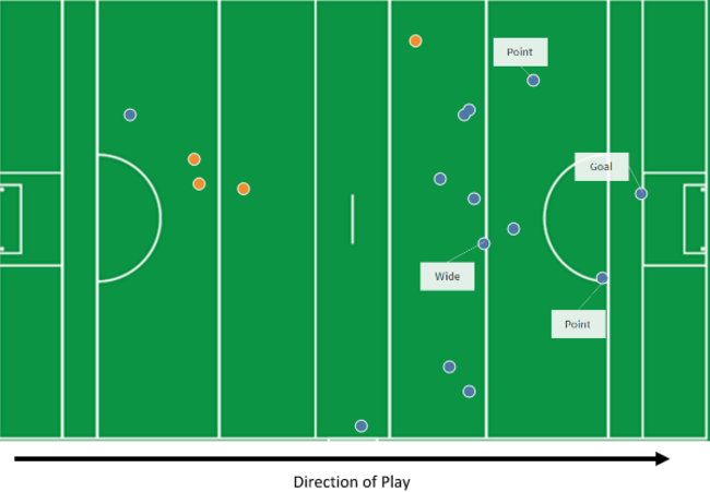 Although he is not Dublin’s most prolific ball carrier (Ciaran Kilkenny) he is their most frequent shooter. With so few possessions it highlights the importance of quality over quantity.