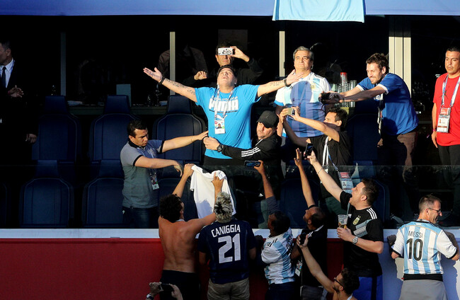 1.Halfway through the match between Argentina and Nigeria it looked as if something had begun to take hold as the image of Diego Maradona seemingly asleep in his VIP box appeared on TV screens all over the world. In reality his appearance had raised questions from the moment he entered the stadium. Memes of his demoniac look, arms crossed across his chest, had gone viral, as did the gif of him dancing with a woman in the crowd.