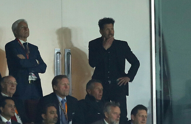 Sime Vrsaljko was dismissed for collecting two bookings inside the opening 10 minutes of the Europa League semi-final first leg at Emirates Stadium, while Simeone was sent to the stands shortly afterwards by referee Clement Turpin.