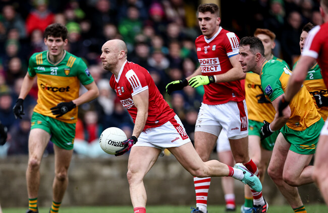 With five minutes to go, Caolan McGonagle caught a kickout, fed Ciaran Moore who played in captain Patrick McBrearty to step inside Cork goalkeeper Patrick Doyle and rifle to the net.