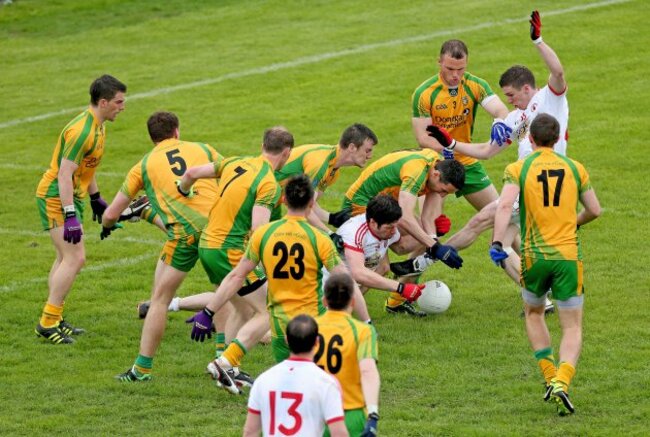 Tyrone's Sean Cavanagh surrounded by 9 Donegal players