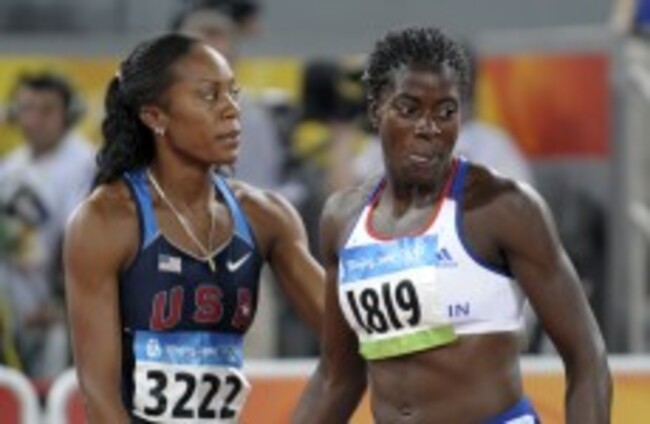 Bronze medalist Sanya Richards, left, of the United States, and gold medalist Christine Ohuruogu, of Britain, shake hands after the women's 400-metre final at the Beijing Olympics. Thomas Kienzle/AP/Press Association Images Thomas Kienzle/AP/Press Association Images