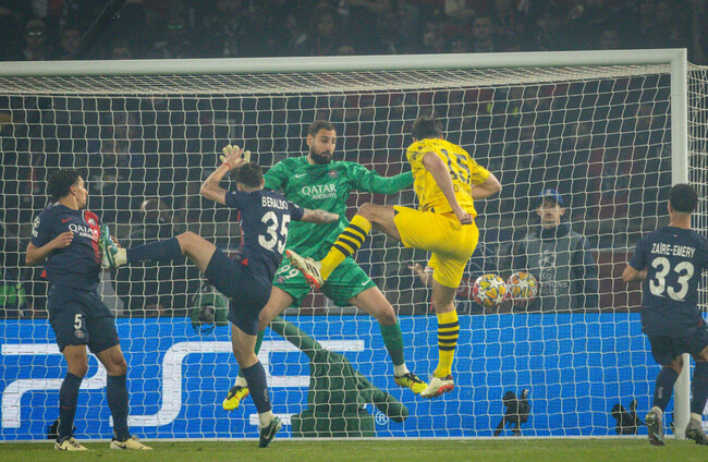 Dortmund broke, and in a flash Karim Adeyemi was running at an exposed PSG defence. Advancing into the penalty area, he drew back his left foot and fired low only to be denied by a strong palm thrust out brilliantly by Gianluigi Donnarumma.