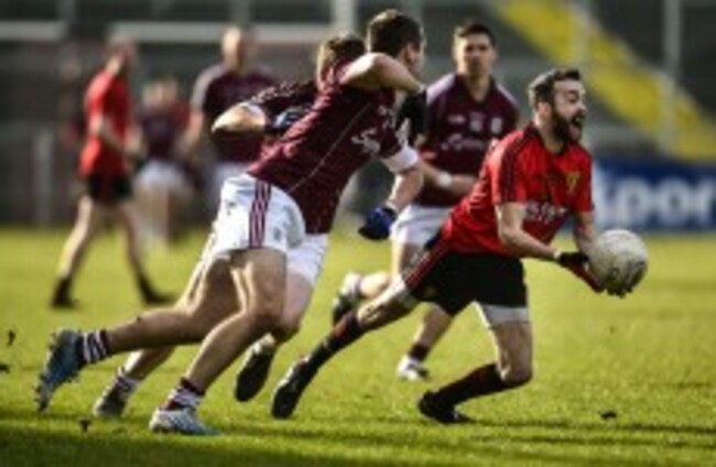 Scorers for Down: Donal O’Hare 1-5 (0-3f), Paul Devlin 0-4 (one ’45′, 2f), Conor Laverty 0-3 (1f), Mark Poland 0-2, Ross McGarry, Kevin McKernan, Caolan Mooney 0-1 each.Scorers for Galway: Michael Martin 0-5 (4f), Danny Cummins 0-4 (2f), Patrick Sweeney 1-0, Sean Denvir, Adrian Varley 0-2 each, Garreth Bradshaw, Damien Comer, Paul Conroy 0-1 each.