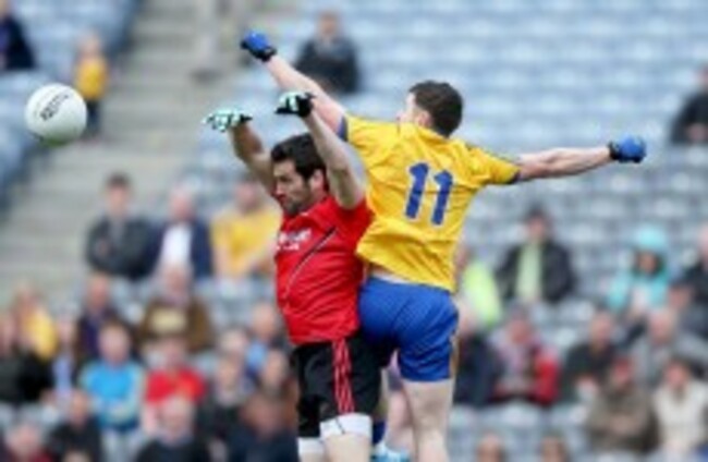 Roscommon 0-5 Down 0-4: Not for long. Cian Connolly shows good strength to hold off his man and fist Roscommon back into the lead.