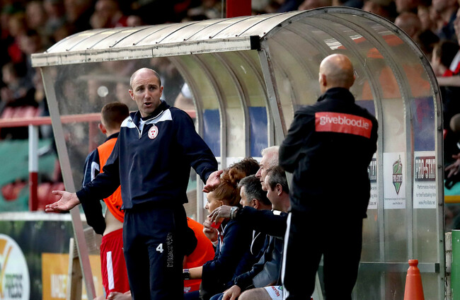 The big talking point of the first half came on twenty-eight minutes as Chris Lyons set himself to shoot in the box but looked to have been brought down by Declan Prendergast, only for referee Matthews to instead award Drogheda a corner.