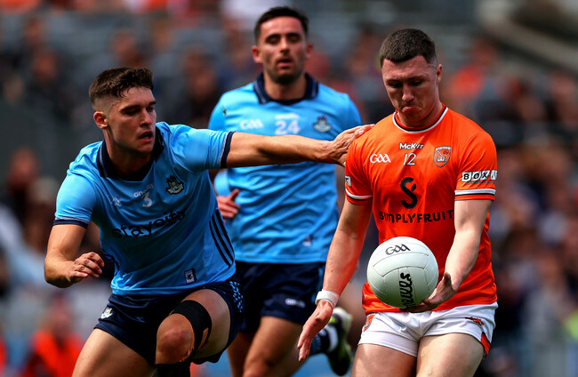 It helped establish Dublin’s dominance, in front 0-6 to 0-3 after the opening quarter as they attacked the Hill 16 goal. The home support was in full voice but the terms of the match changed in the second quarter. Armagh’s revival was kick-started by a Rory Grugan two-pointer from play on the 17th minute mark, Oisin Conaty spying him in space and despatching a crossfield pass in his direction.