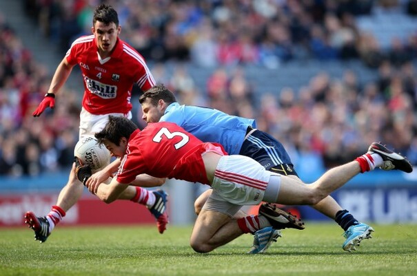 Jamie O'Sullivan and Fintan Goold tackle James McCarthy