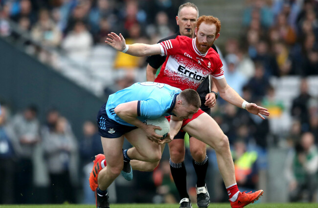 Dublin found their scores with more economy. Ross McGarry with a brace and Tom Lahiff picking up his second steadied them, while they were able to tempt the Derry defence into a succession of fouls that Con O’Callaghan punished.