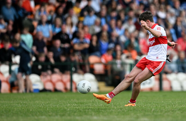 Sargent’s penalty in the 36th minute was a pivotal score for Damian McErlain’s side with Grant’s goal following in the 50th minute. Leading by seven points and approaching injury time, Spiers put some gloss on the victory as he produced a delicious chip to grab Derry’s third goal.