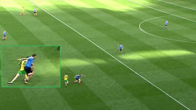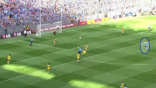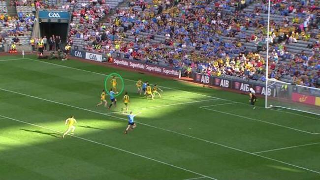 Between the three of them, Donegal barely get a glove on McManamon and because of Andrews run he has acres of space to run into.