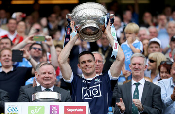 Stephen Cluxton lifts the Delaney Cup in 2017. Tommy Dickson/INPHO