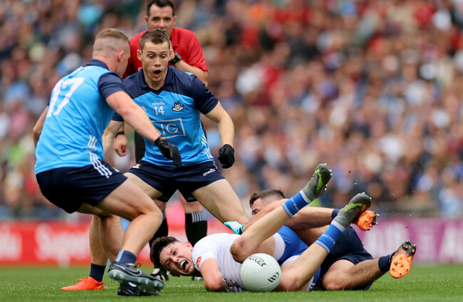 Only, that was as good as it got for Monaghan. Dublin attacked their own kickout aggressively to win possession and it ended up in the hands of Brian Fenton who negotiated his way past Mohan with a mixture of balance and brute strength to regain the lead.