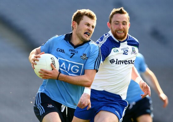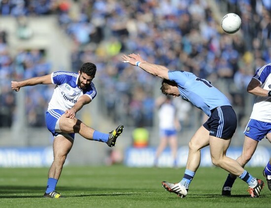 Dublin 0-5 Monaghan 0-4: Johnny Cooper stops a Monaghan surge dead but he does so illegally. McManus points the free.