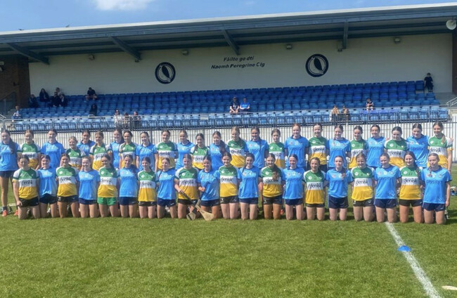 Dublin and Offaly’s Minor camogie teams return to the changing rooms after being informed that their Leinster final could not proceed while both teams were wearing shorts.