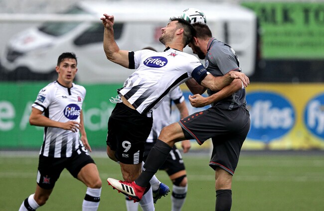 We have our first corner of the game, and it goes to Dundalk. It came from a free in which saw Prenga get his head to it. Duffy delivers from the left — a brilliant ball — but Hoare heads wide. Close again, decent chance.
