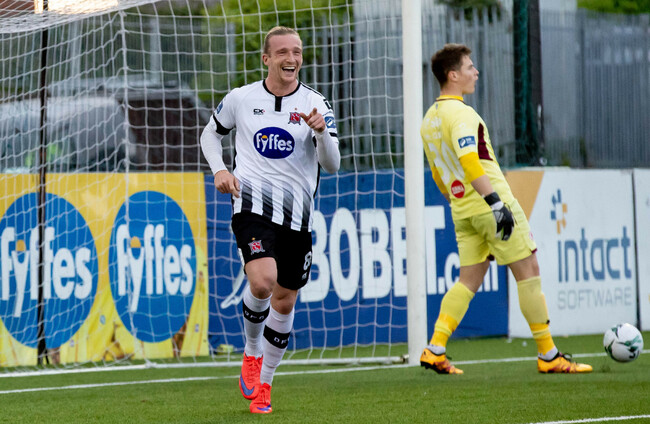Dundalk responded with Michael Duffy twice going close. His first shot was deflected over before a second effort shortly after was blocked in the box, as the champions took a 1-0 lead into half-time.