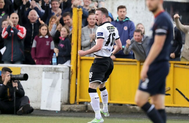 They came closest when Conan Byrne spotted Gary Rogers off his line from inside his own half. His shot had the goalkeeper worried and he recovered to tip over. But then the game sprang to life. Sam Verdon shot over for the visitors before Dundalk assumed command.