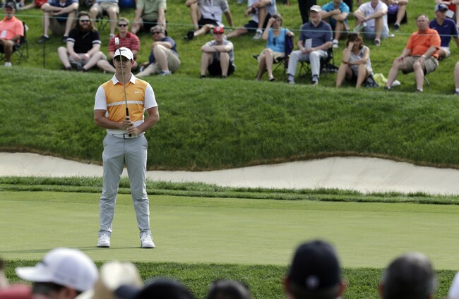 Rory McIlroy reacts after missing a putt on the 14th hole during the first round of the Memorial golf tournament. Darron Cummings