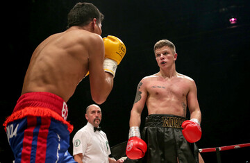 Dylan Moran lands a left uppercut on Nelson Altamirano in Castlebar. Laszlo Geczo / INPHO