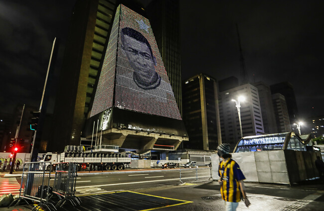 Pele's image was reproduced on the building of the Federation of Industries of Sao Paulo following his death on Thursday at the age of 82. Marcelo Chello