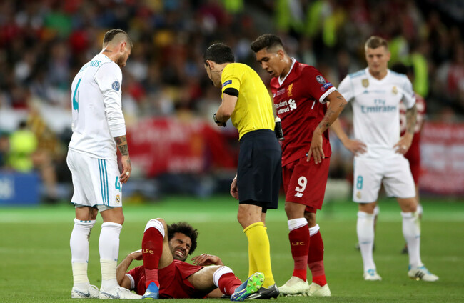 The Liverpool star landed awkwardly following a challenge with Sergio Ramos and appeared to injure his shoulder.