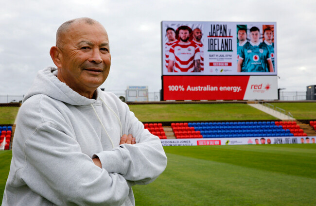 EDDIE JONES SAID he hoped Australian fans would roar on his Japan side when they face Ireland north of Sydney in July, and then again a year later at the Rugby World Cup.