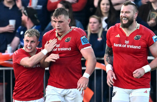 The hosts led 6-0 early on via two penalties from former Munster out-half Ben Healy and a thumping hit from James Lang denied number eight Gavin Coombes a score in the left corner before Munster struck.