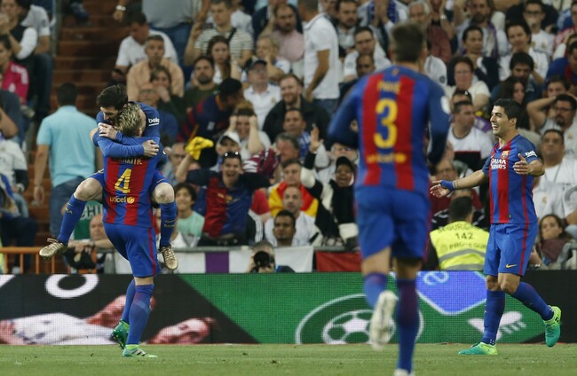 Ivan Rakitic’s stunning strike and a red card for Madrid captain Sergio Ramos for chopping down Messi 13 minutes from time put Barca on course for victory before James Rodriguez came off the bench to level four minutes from time.