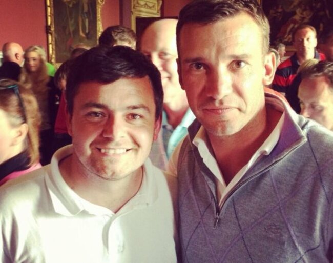 And the Dubliner tweeted out this image today of himself with former Ballon D’Or winner Andriy Shevchenko and former Munster and Ireland man Mick O’Driscoll loitering in the background.