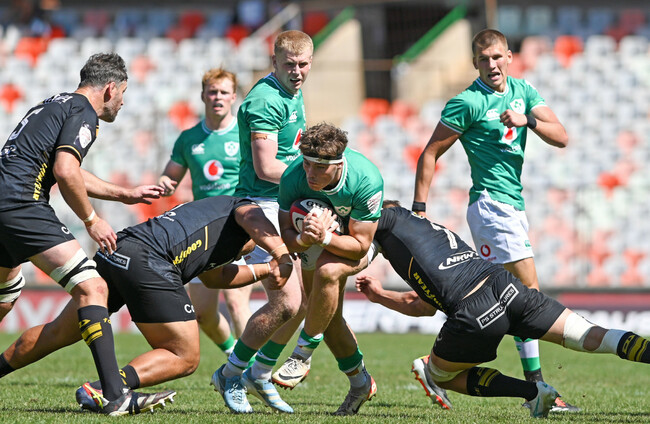 Jude Postlethwaite, Chay Mullins, Sean Jansen and Alex Kendellen all crossed for Emerging Ireland in the first half, with a Sam Prendergast penalty their sole score of the second period.