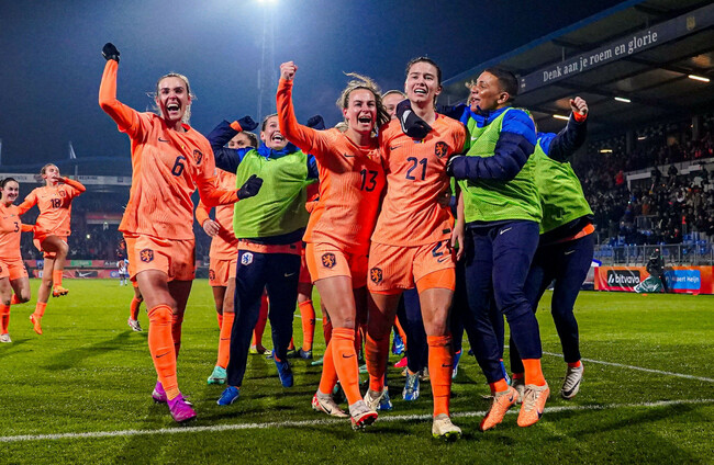 Damaris Egurrola and the Netherlands scored two late goals against Belgium to clinch their Nations League group at England's expense. Joris Verwijst/Orange Pictures/Alamy Stock Photo