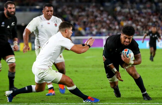 Ardie Savea takes advantage of an England line-out mistake, and Richie Mo'unga kicks the conversion.