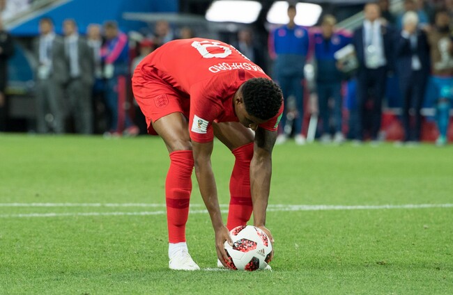 Marcus Rashford prepares for his penalty against Colombia at the 2018 World Cup. Elmar Kremser/SVEN SIMON